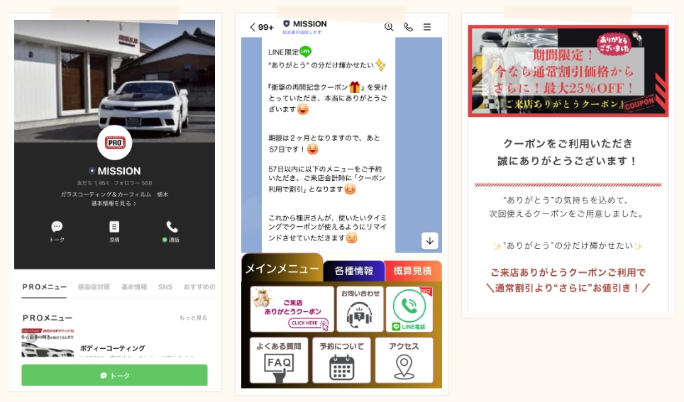 車コーティングのお客様のLINE公式アカウントとプロラインフリーを構築しました。